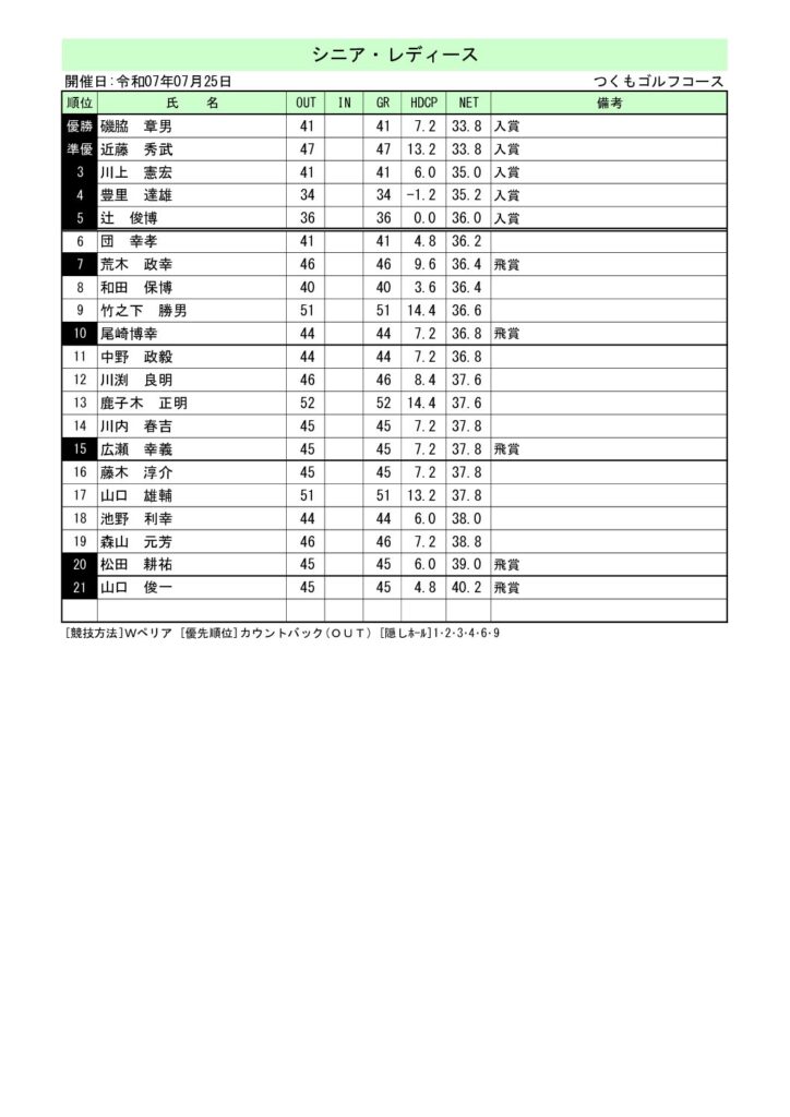 シニアレディース 2025年7月25日